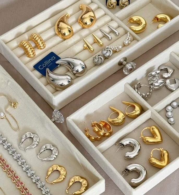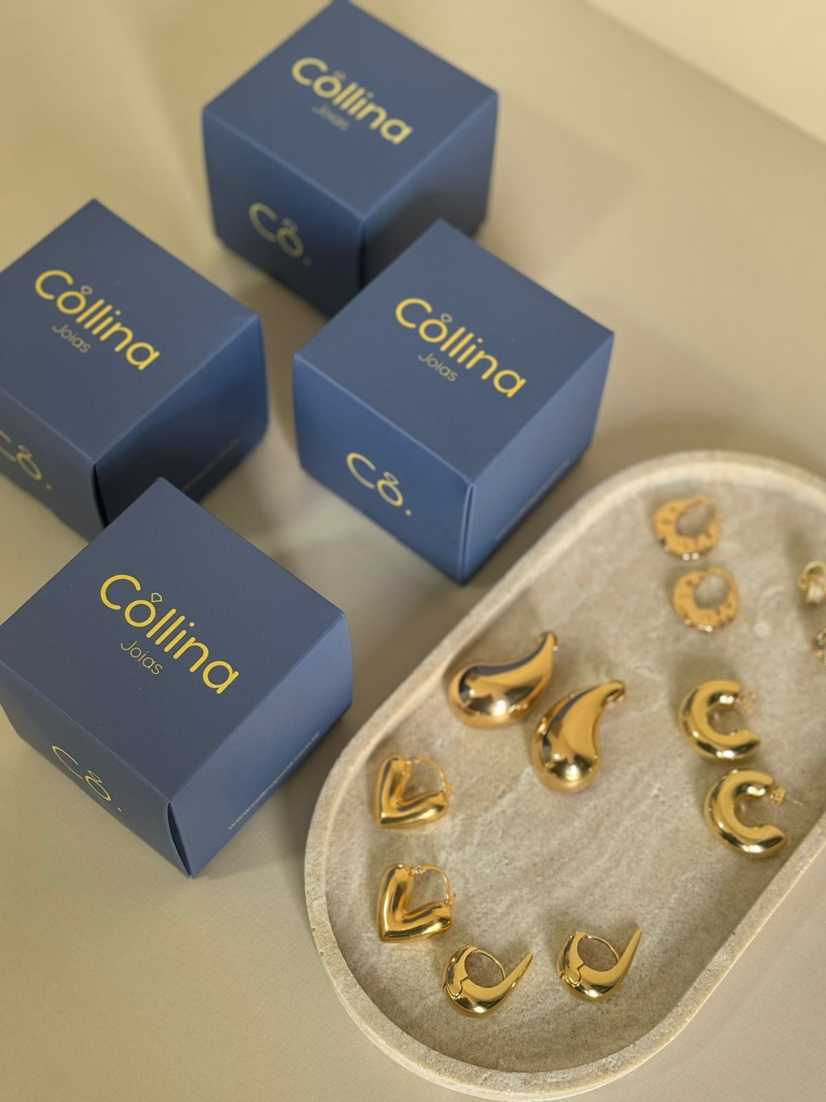 AS SEMIJOIAS COLLINA, SÃO BANHADAS A OURO 18K OU RÓDIO BRANCO. SÃO LIVRES DE NÍQUEL EM SUA COMPOSIÇÃO E HIPOALERGÊNICAS. POSSUI UMA DURABILIDADE DIFERENCIADA E UM DESIGNER ESCOLHIDO PARA MULHERES QUE CUIDAM DA SUA IMAGEM
