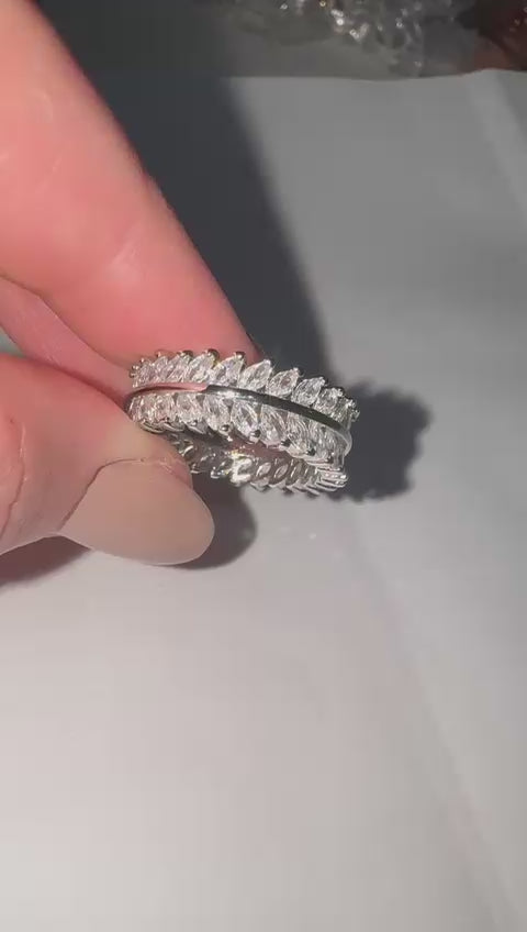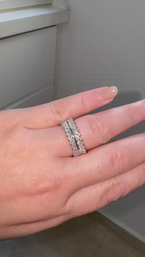 Anel folhagem cravejado em zircônias Banhado a Ródio Branco