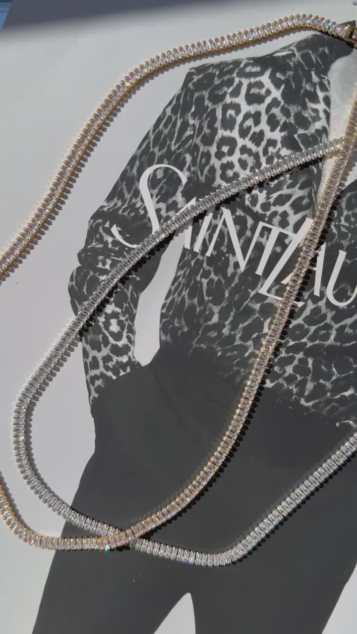 Colar Riviera Retangular 43cm com pedras zircônias 4mm.